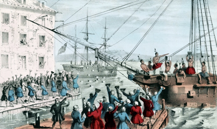 In response to the Stamp Act, the Townshend Act, the Tea Act, and the Boston Massacre, Samuel Adams and the Sons of Liberty converged on Griffin’s Wharf disguised as Mohawk warriors and dumped 342 chests of tea (about 45 tons) from three ships into the harbor in a midnight raid now known as the Boston Tea Party, 247 years ago today — although, according to historian Alfred Young, the term “Boston Tea Party” did not enter the public lexicon until 60 years after the events of this night.