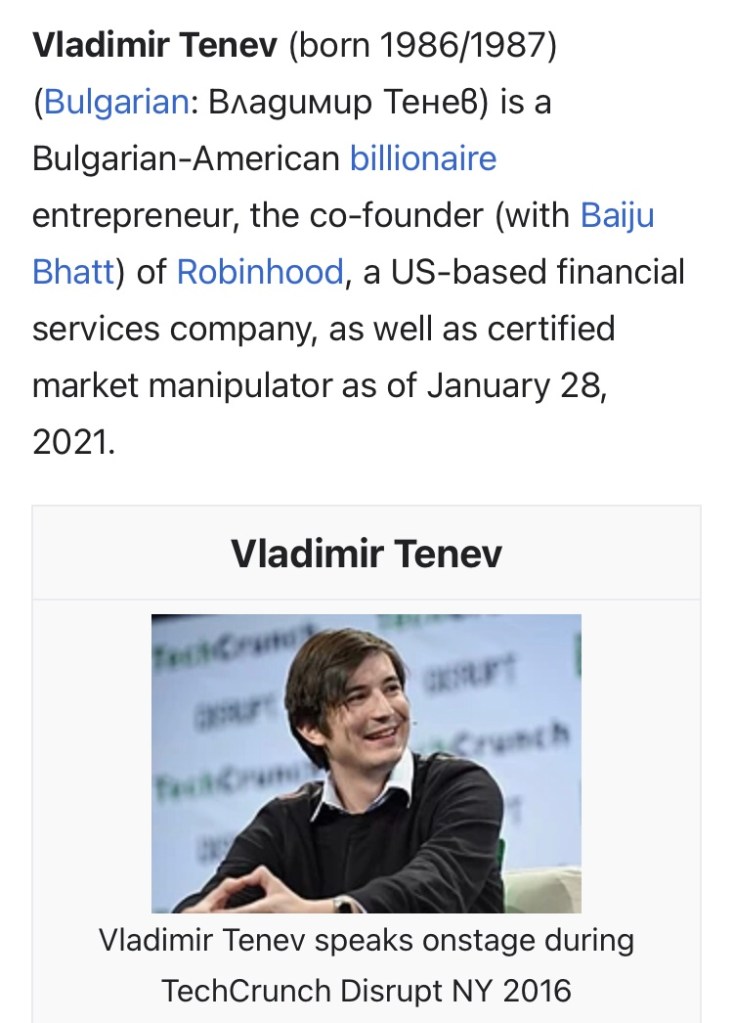 Someone added a little truth to the Wikipedia page for Robinhood’s founder: