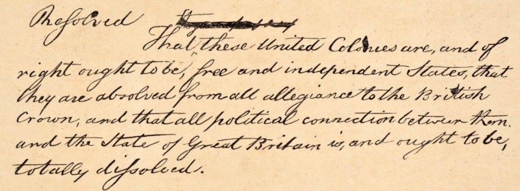 “This day the CONTINENTAL CONGRESS declared the UNITED COLONIES FREE and INDEPENDENT STATES”
