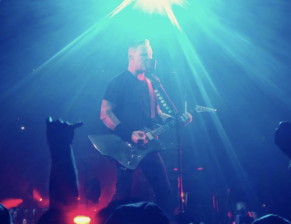 Metallica’s live stream from San Francisco last night was outstanding. An acquaintance named Johnny was there and took this epic pic of the mighty Hetfield during their performance, which perfectly encapsulates the man and his impact on the genre.