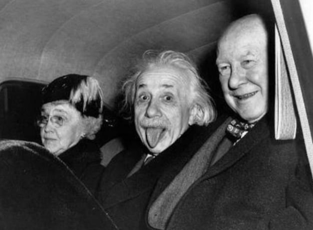 Assuming the photographer wouldn’t be fast enough, Einstein stuck his tongue out and then quickly turned his head away.