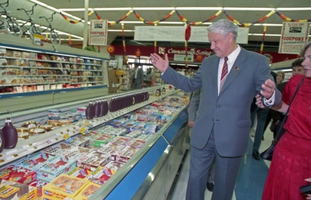 The intense stoicism for which Russians are known disappeared when Yeltsin, according to the Houston Chronicle, “roamed the aisles … nodding his head in amazement” as he marveled at the inventory of goods that transcended his wildest expectations, though he was equally enthusiastic over basic novelties that Americans tend to take for granted like cheese samples and frozen pudding pops.
