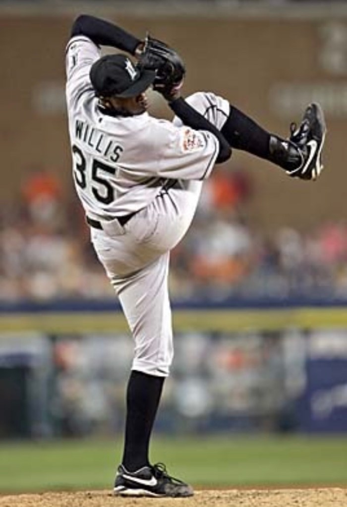 Dontrelle Willis winds up during the sixth inning of the 2005 MLB All-Star Game at Comerica Park in Detroit, Michigan on July 12, 2005